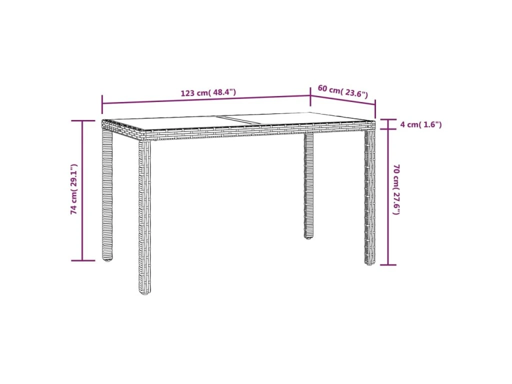 - Rozměry stolu: 123 x 60 x 74 cm (D x Š x V)