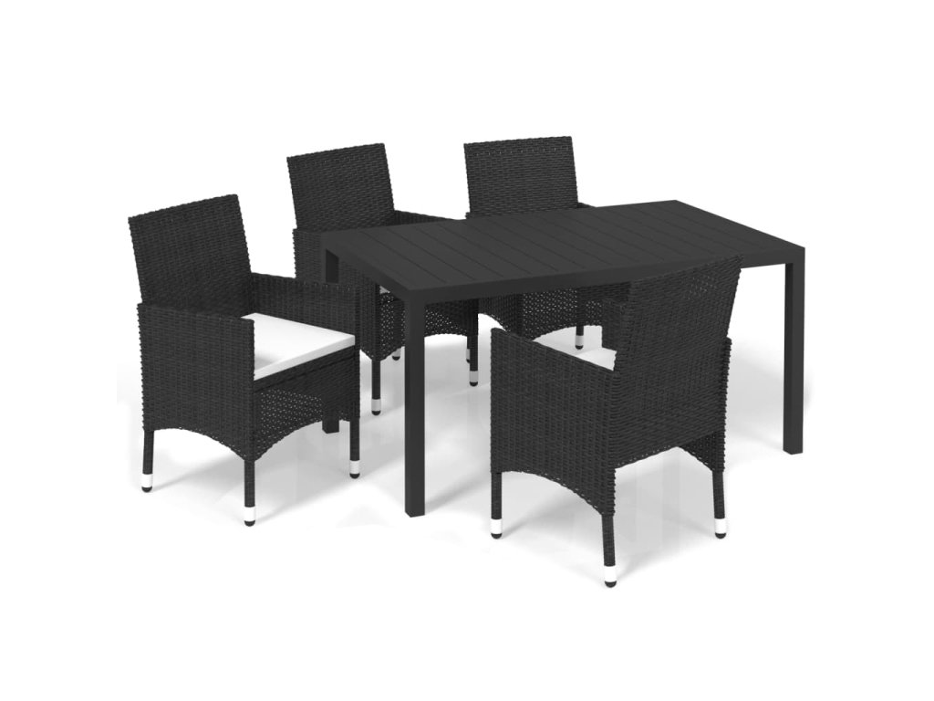 5dílný zahradní jídelní set s poduškami polyratan černý 3095011