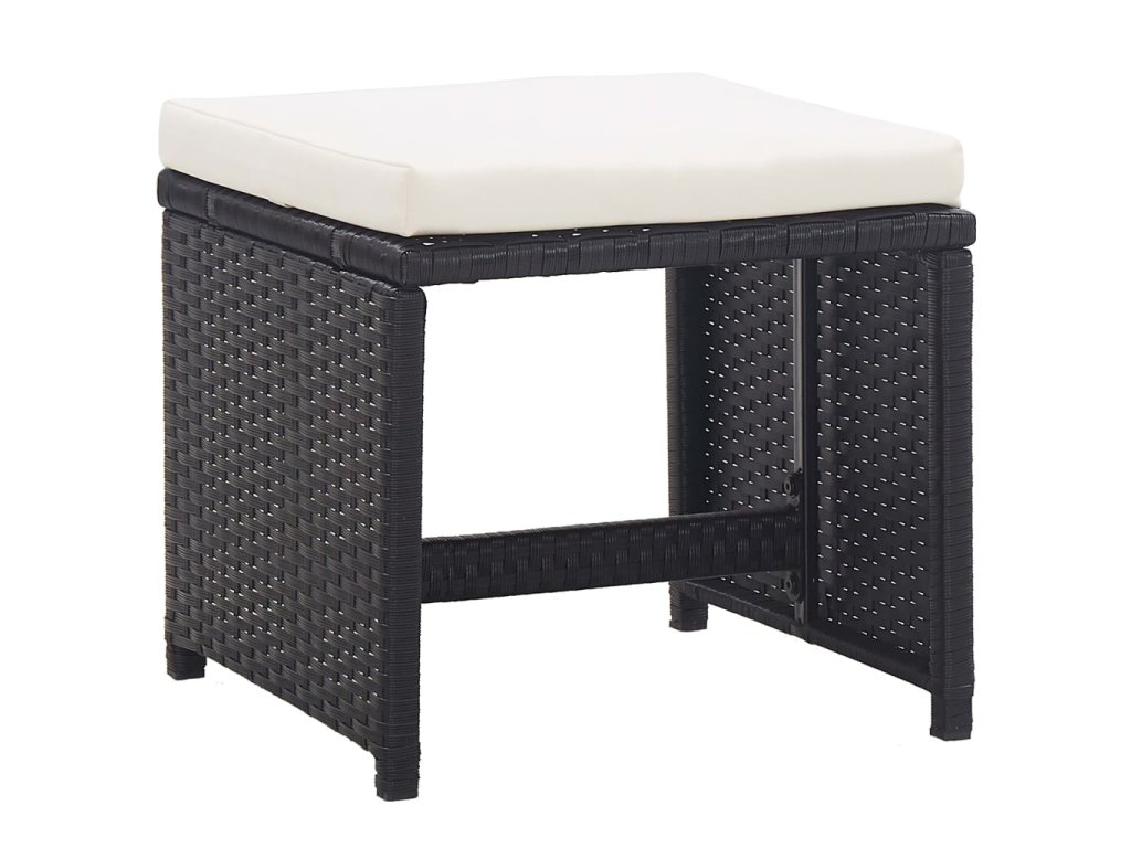 Balení obsahuje 1 stůl, 2 židle, 2 taburety a 6 polstrů. Poznámka: Doporučujeme vám soupravu za deště, sněhu a mrazu přikrýt.
