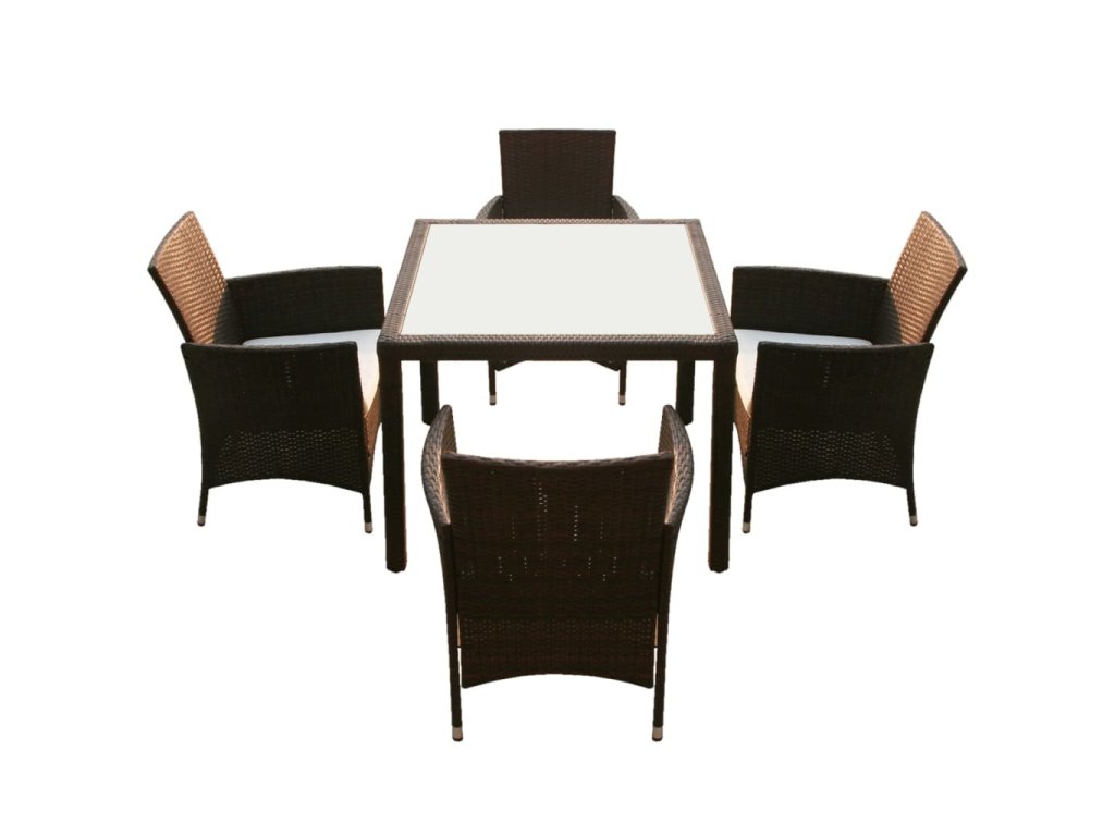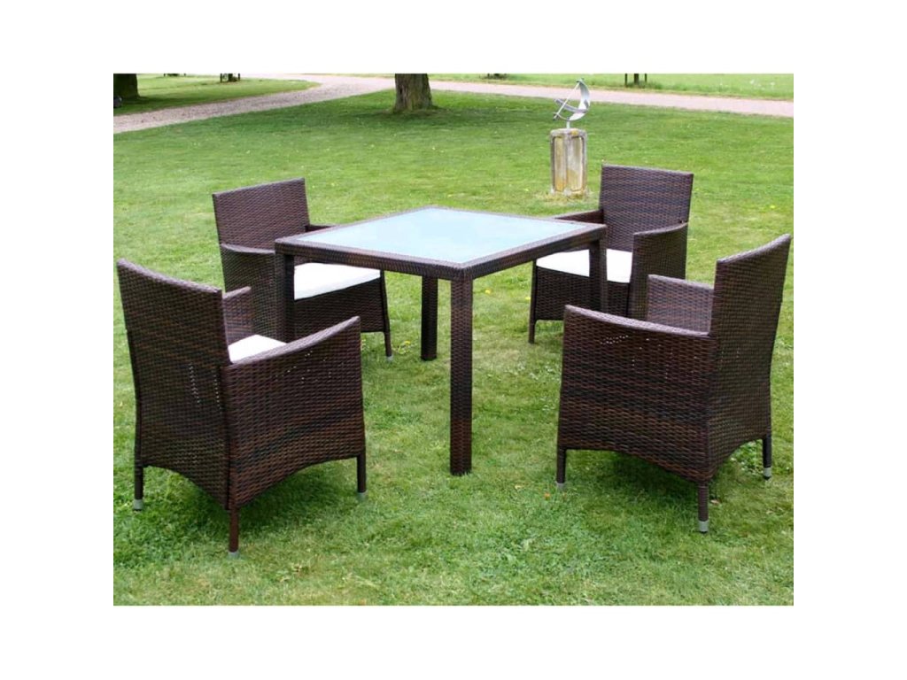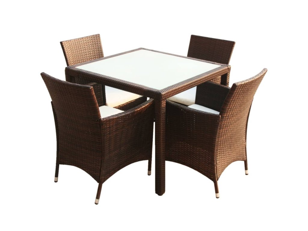 - Balení obsahuje 1 stůl se skleněnou deskou, 4 ratanové židle a 4 vyjímatelné matrace na sedáky