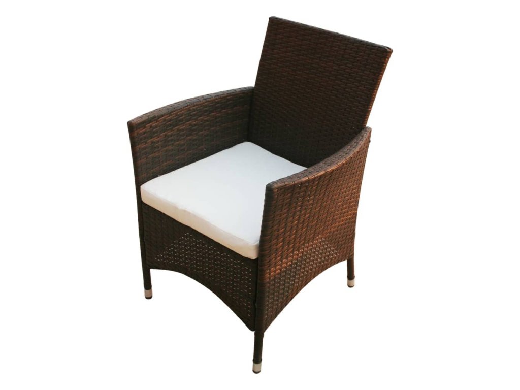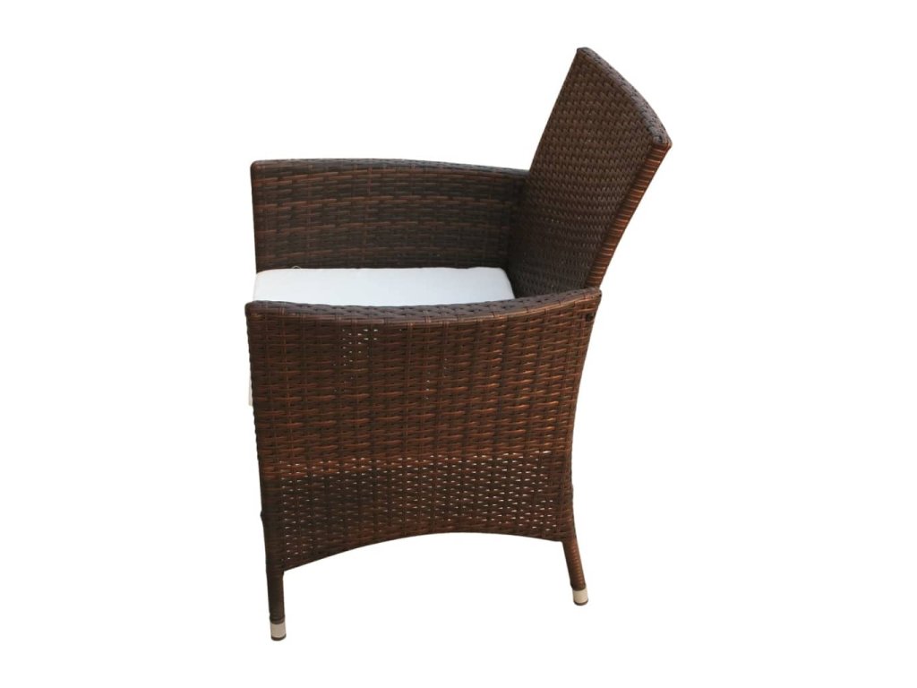Balení obsahuje 1 stůl se skleněnou deskou, 4 ratanové židle a 4 vyjímatelné matrace na sedáky, celkem tedy 9 ks.