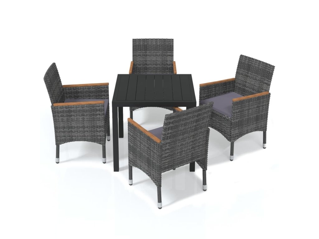 5dílný zahradní jídelní set s poduškami polyratan šedý 3095028