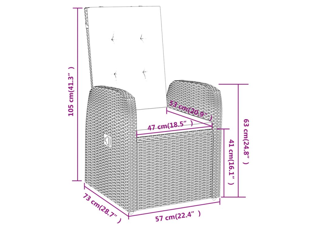 Stůl i židle mají rámy z práškově lakované oceli, jsou tedy robustní, stabilní a vhodné pro každodenní venkovní použití. Židle jsou vyrobené z voděodolného PE ratanu, takže se snadno čistí a hodně toho vydrží. Opěradlo si můžete nastavit stisknutím tlačítka na boku. Nábytek má lehkou konstrukci, lze ho tudíž bez námahy přesouvat. Husté polstrované podušky na sedák vám navíc zajistí mimořádné pohodlí. Jejich polyesterové potahy jsou nenáročné na údržbu a dají se stáhnout a vyprat. Hladká skleněná stolní deska, kterou jednoduše očistíte vlhkým hadříkem, je ideální k podávání jídla a pití nebo k vystavení různých dekorativních předmětů.