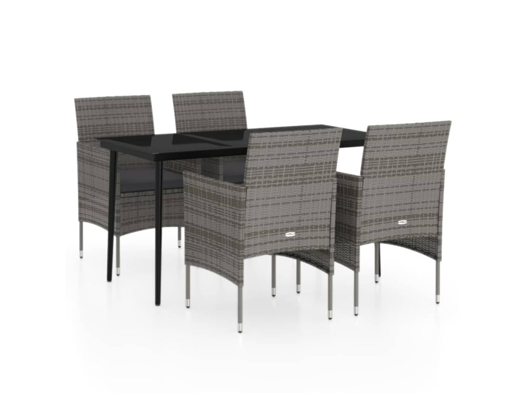5dílný zahradní jídelní set s poduškami šedý a černý 3099313