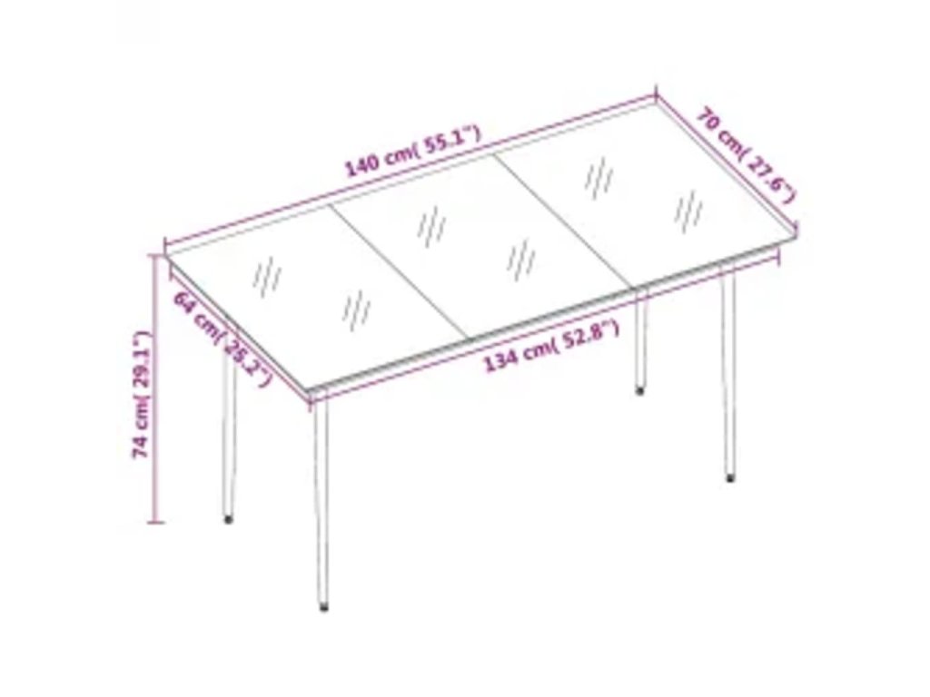- Rozměry stolu: 140 x 70 x 74 cm (D x Š x V)