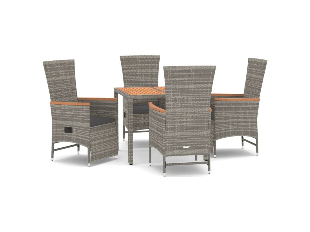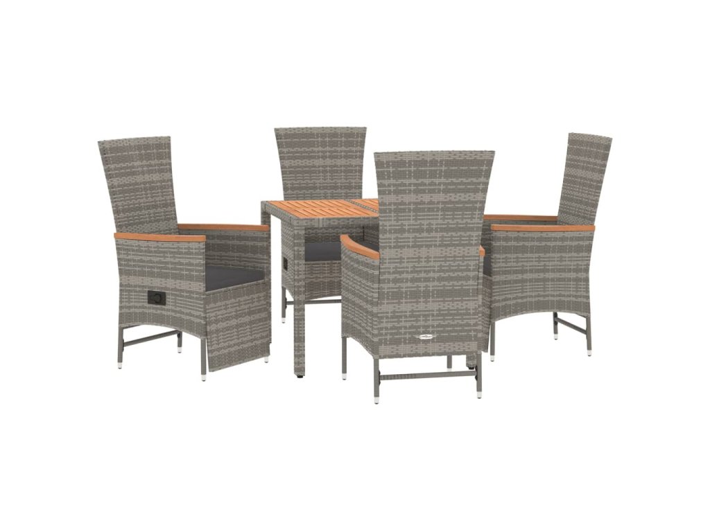 5dílný zahradní jídelní set s poduškami šedý polyratan 3157548