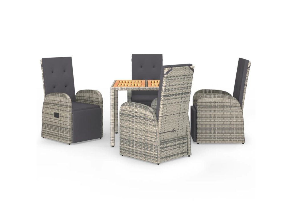 5dílný zahradní jídelní set s poduškami šedý polyratan 3157592