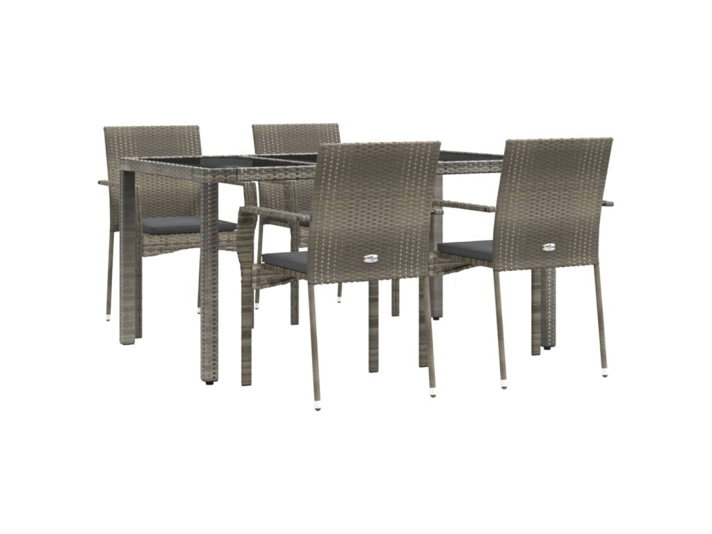 5dílný zahradní jídelní set s poduškami šedý polyratan 3184983