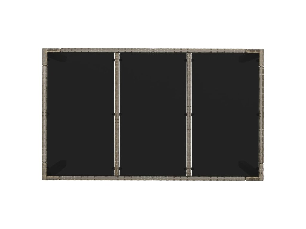 - Materiál: PE ratan, práškově lakovaná ocel, tvrzené sklo