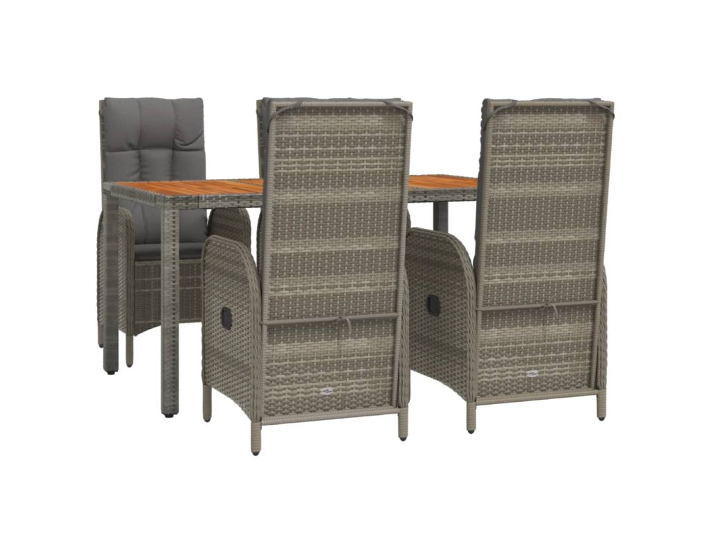 5dílný zahradní jídelní set s poduškami šedý polyratan 3185040