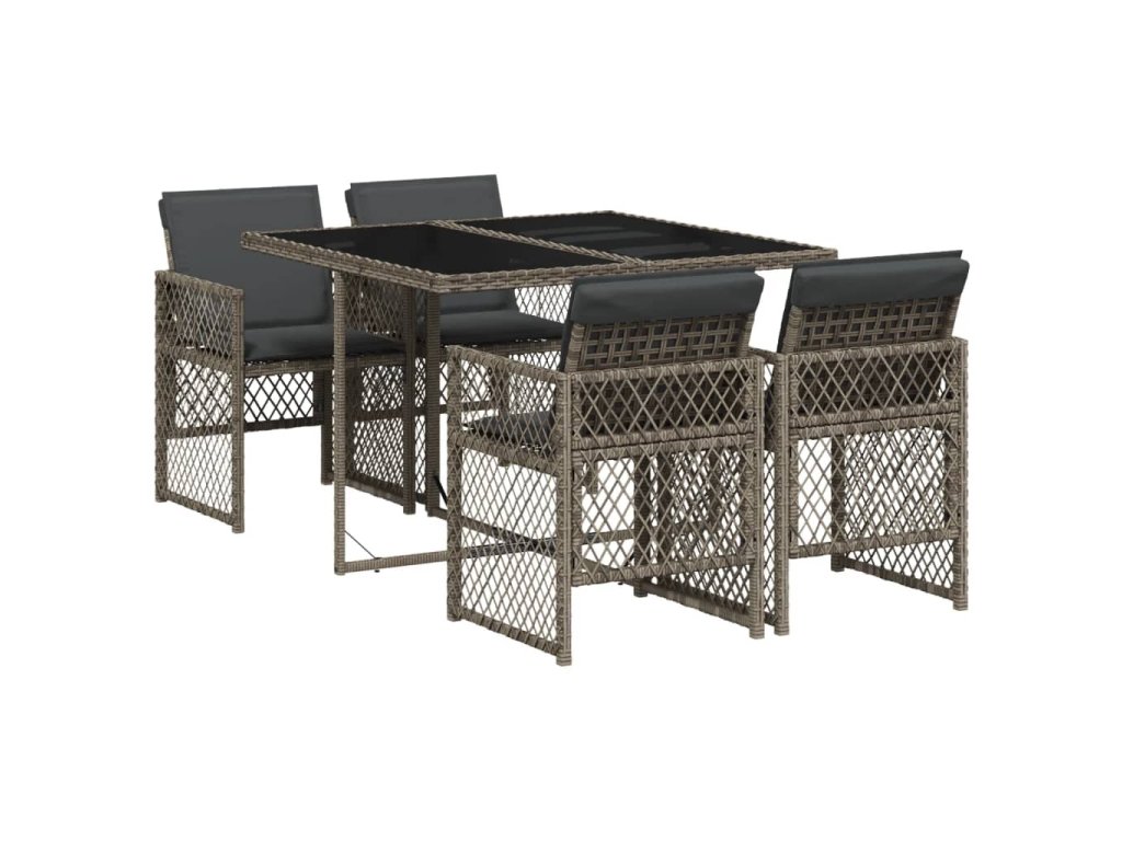 5dílný zahradní jídelní set s poduškami šedý polyratan 3210716