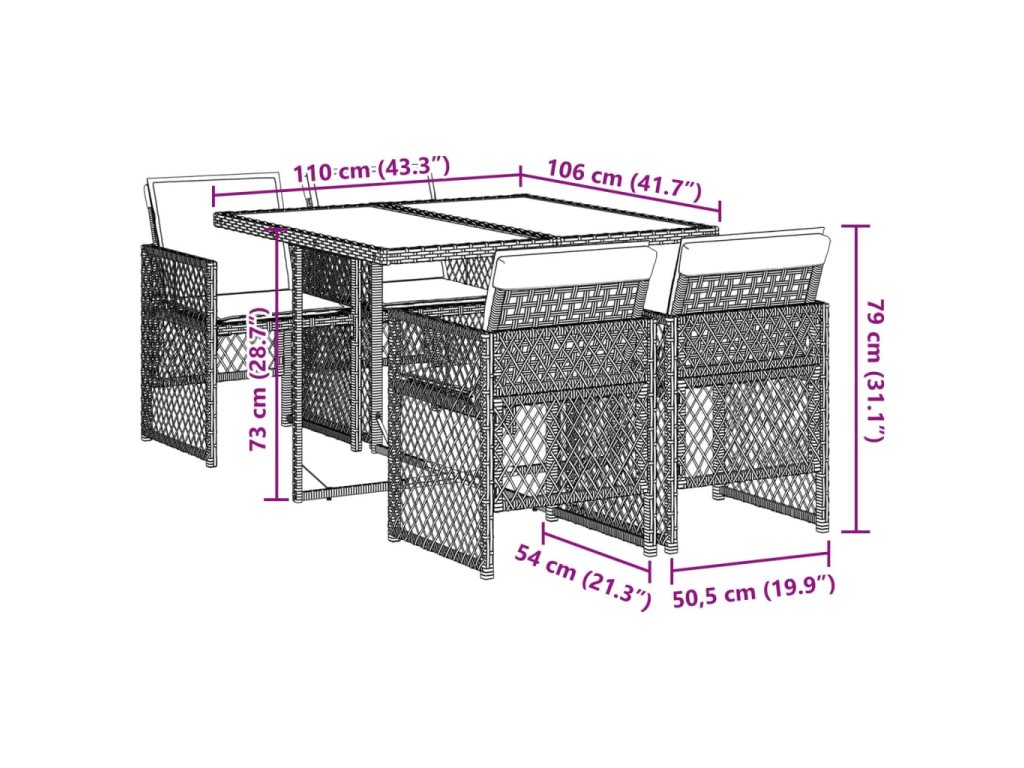 - Rozměry zahradní židle: 50,5 x 54 x 79 cm (Š x H x V)