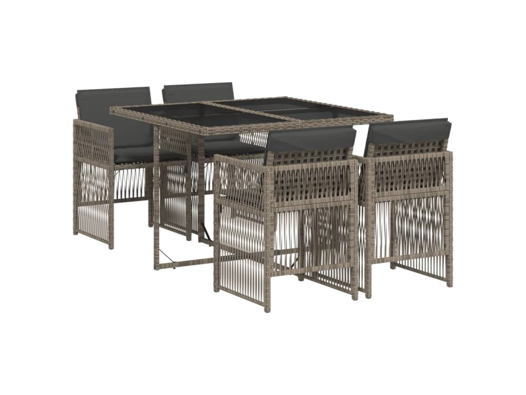 5dílný zahradní jídelní set s poduškami šedý polyratan 3210896