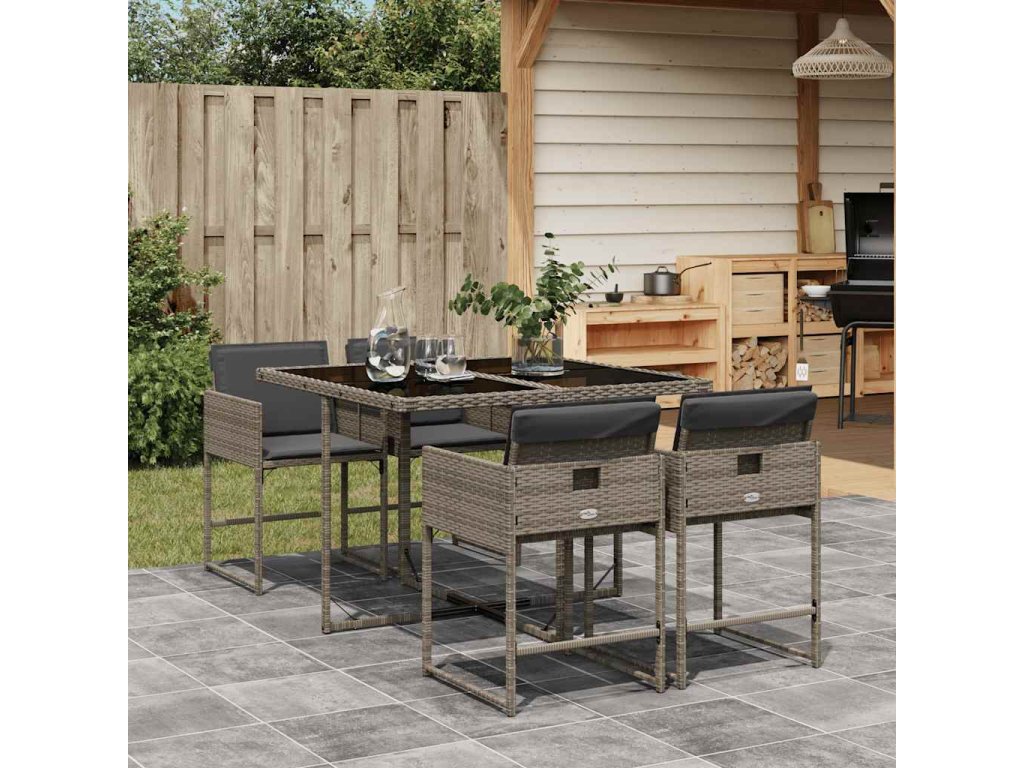 5dílný zahradní jídelní set s poduškami šedý polyratan 3211256