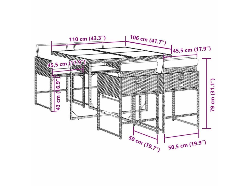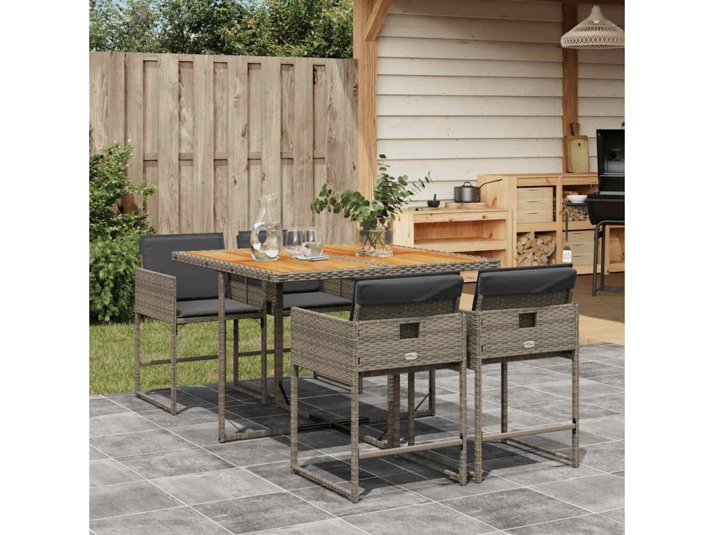 5dílný zahradní jídelní set s poduškami šedý polyratan 3211262