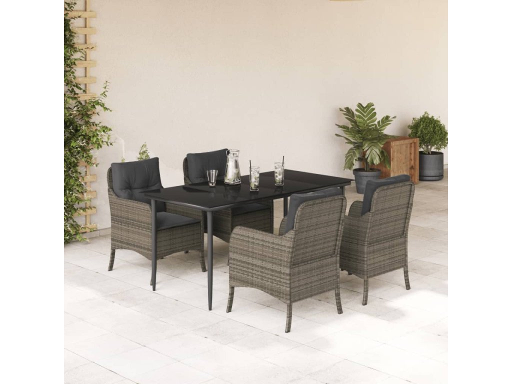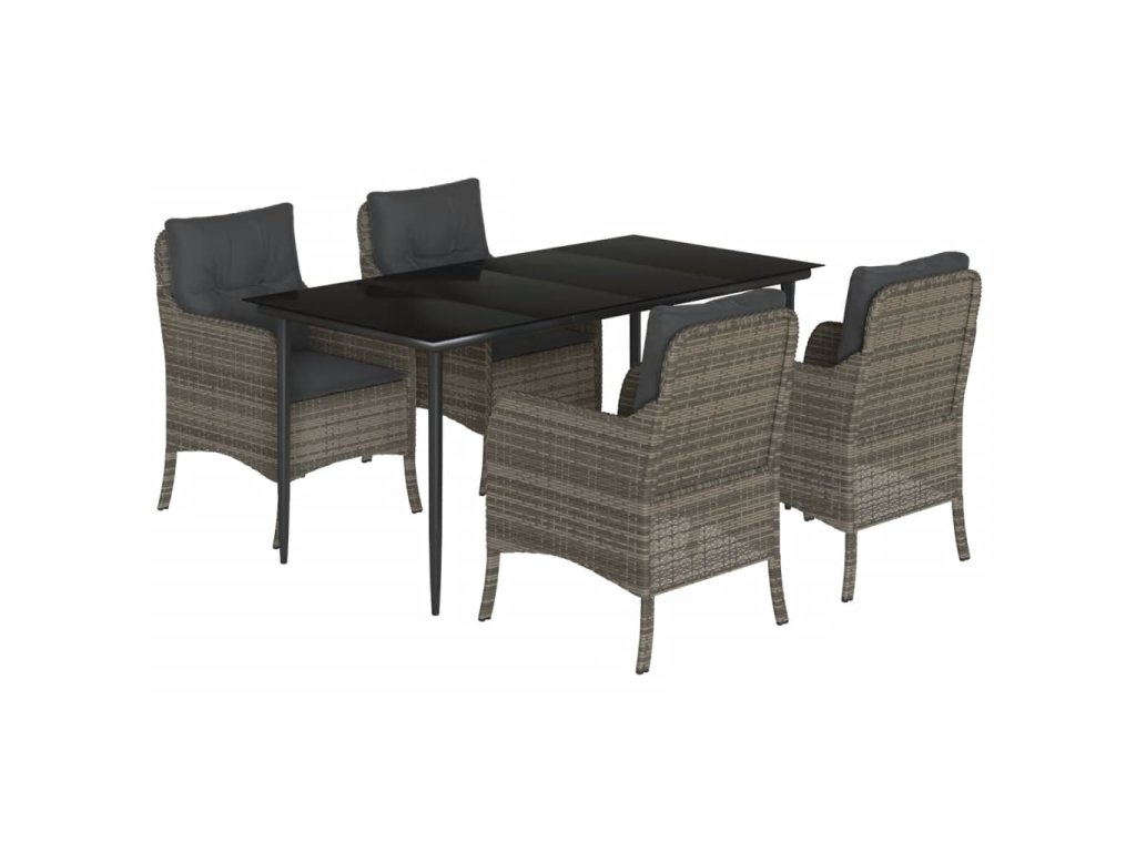 5dílný zahradní jídelní set s poduškami šedý polyratan 3211951