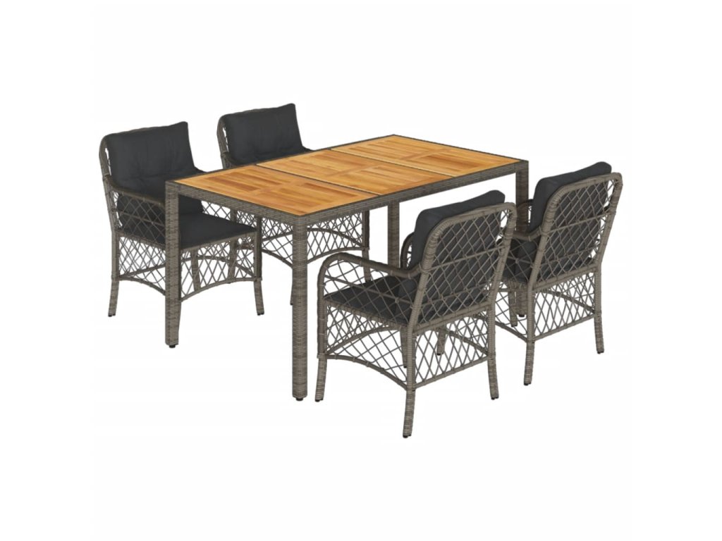5dílný zahradní jídelní set s poduškami šedý polyratan 3212050