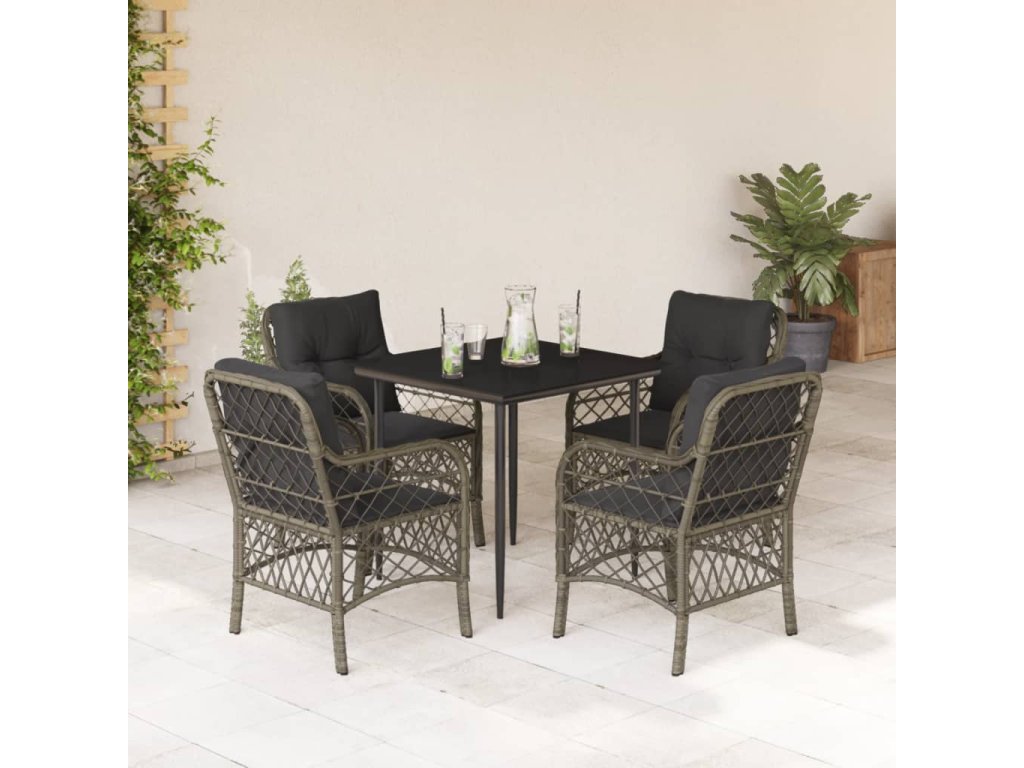 5dílný zahradní jídelní set s poduškami šedý polyratan 3212125