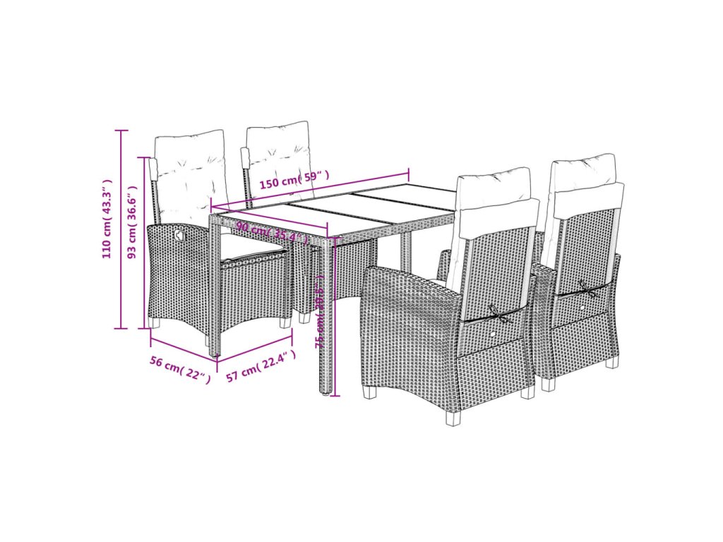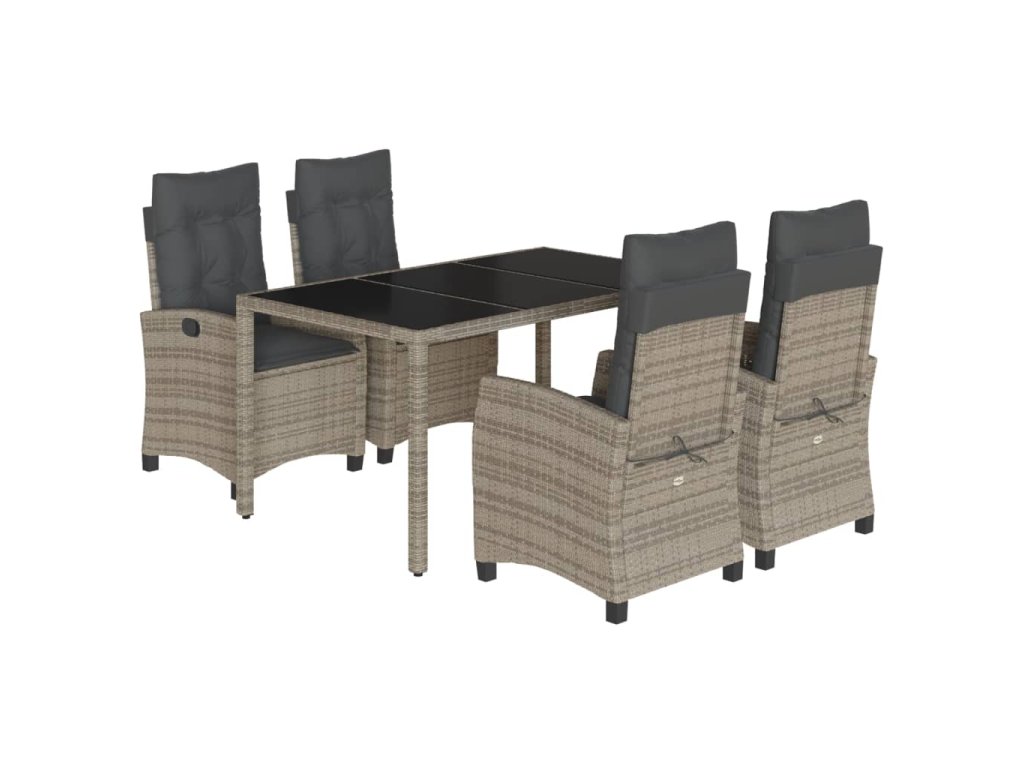 5dílný zahradní jídelní set s poduškami šedý polyratan 3212647