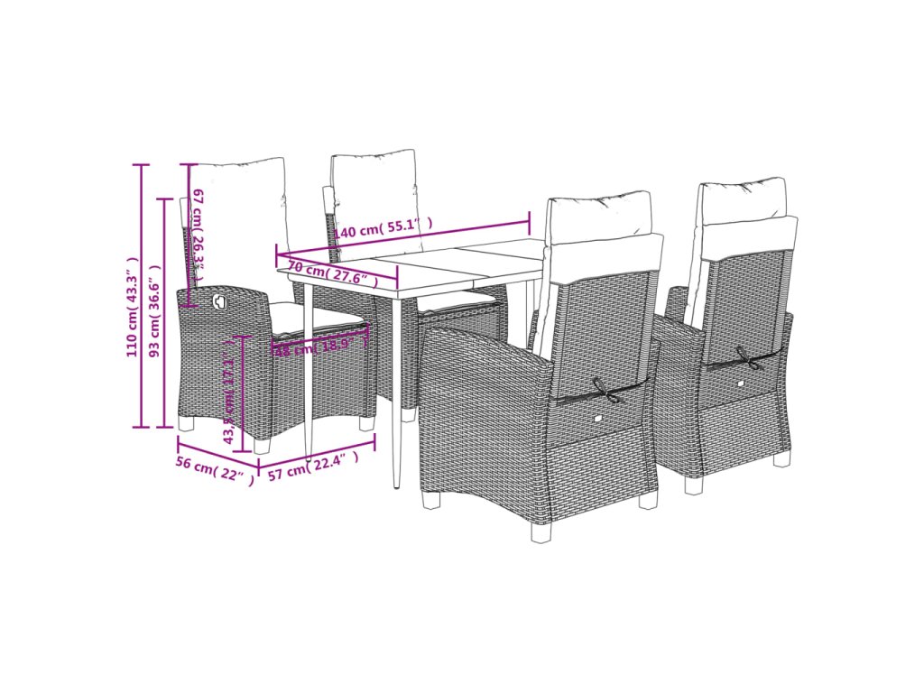 5dílný zahradní jídelní set s poduškami šedý polyratan 3212785