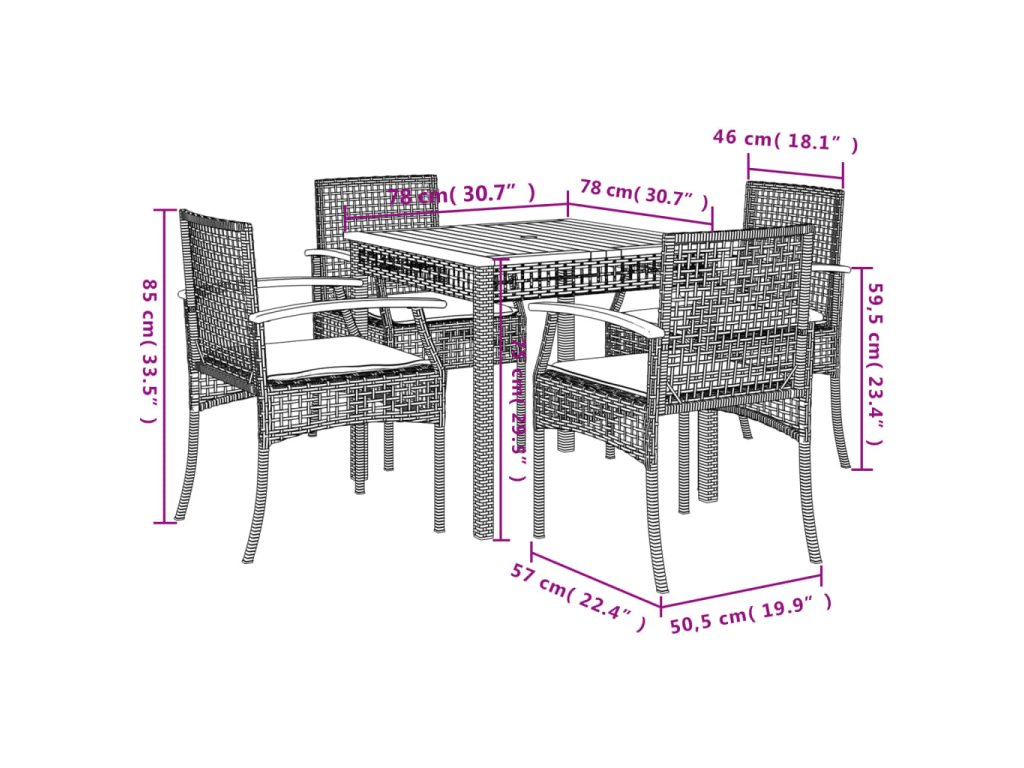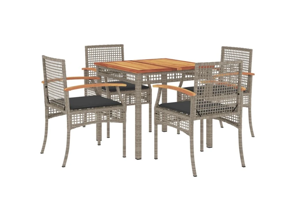5dílný zahradní jídelní set s poduškami šedý polyratan 3213570
