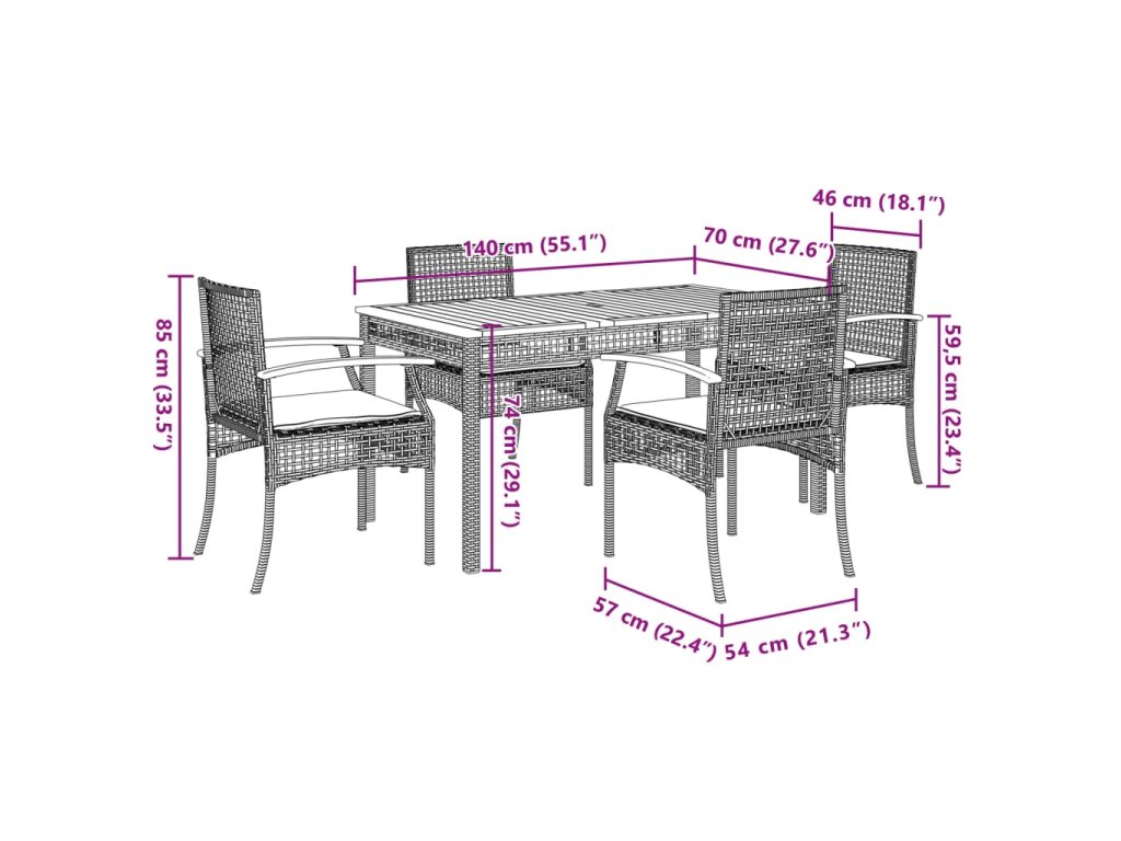 Tento zahradní jídelní set je skvělou volbou pro stolování pod širým nebem nebo jen tak pro odpočívání na zahradě, dvorku či terase.
