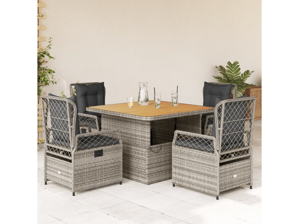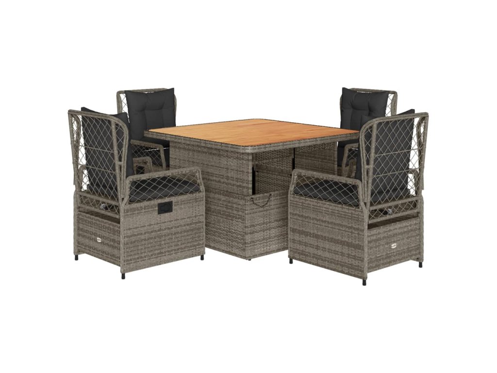 5dílný zahradní jídelní set s poduškami šedý polyratan 3262915