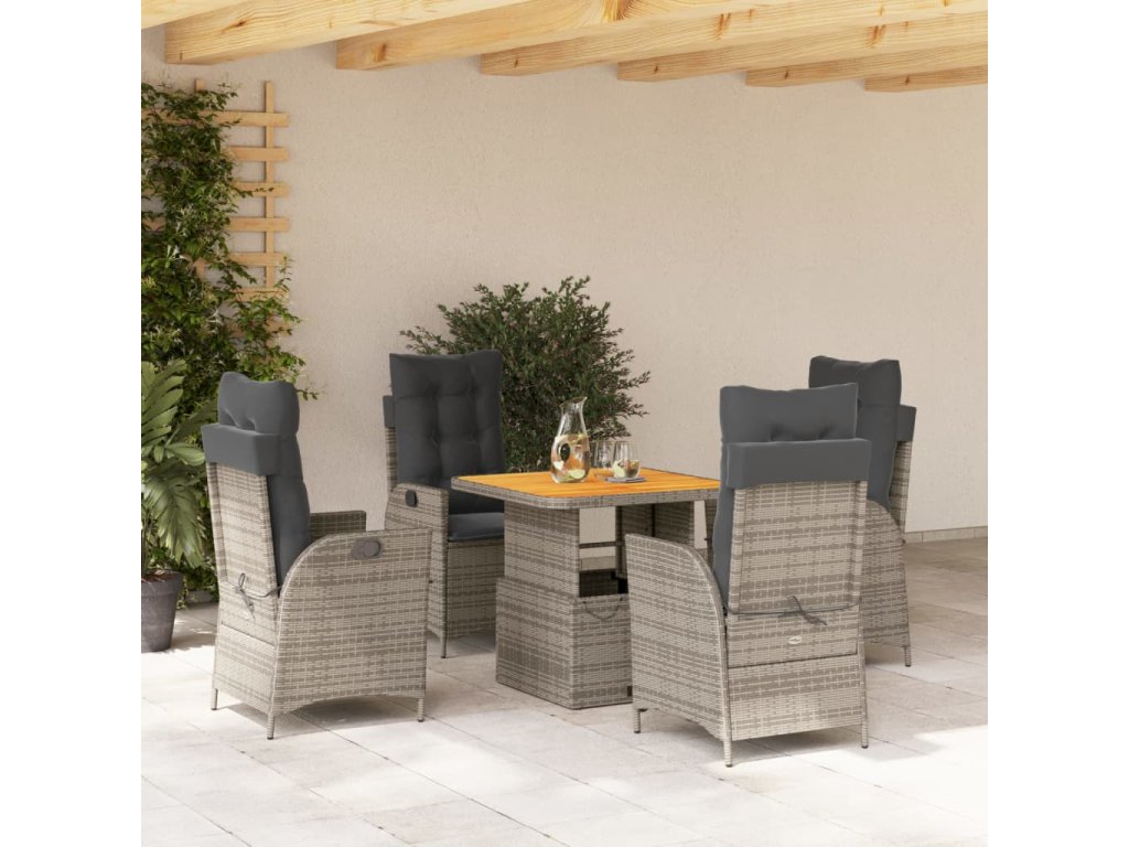 5dílný zahradní jídelní set s poduškami šedý polyratan 3277458