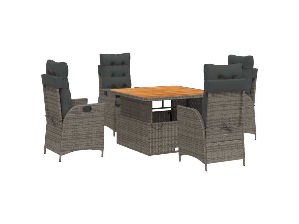 5dílný zahradní jídelní set s poduškami šedý polyratan 3277461