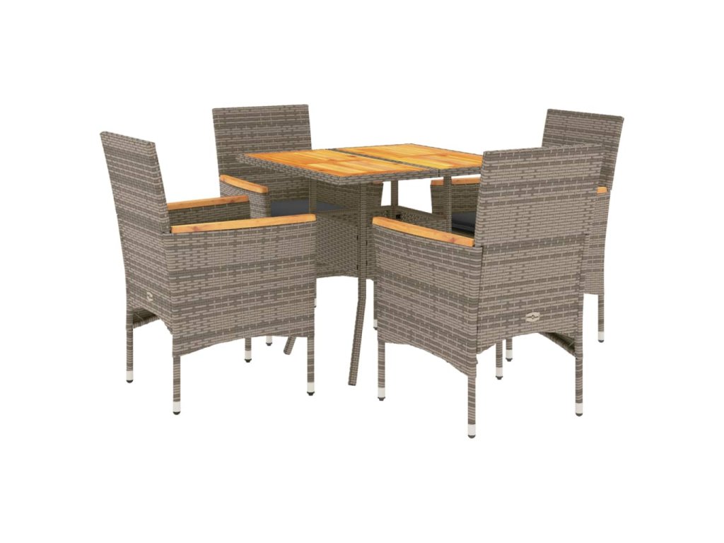 5dílný zahradní jídelní set s poduškami šedý polyratan a akácie 3278700