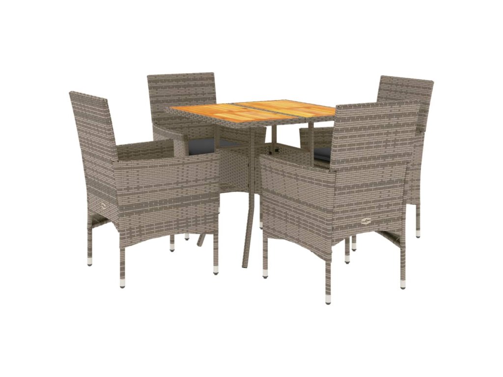 5dílný zahradní jídelní set s poduškami šedý polyratan a akácie 3278714
