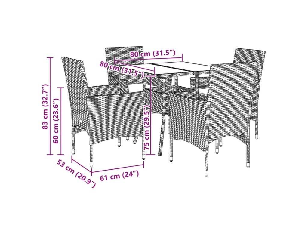 - Rozměry: 80 x 80 x 75 cm (Š x H x V)