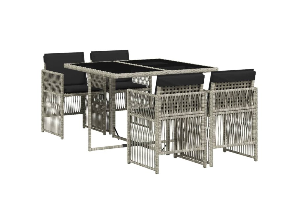 5dílný zahradní jídelní set s poduškami světle šedý polyratan 3210899