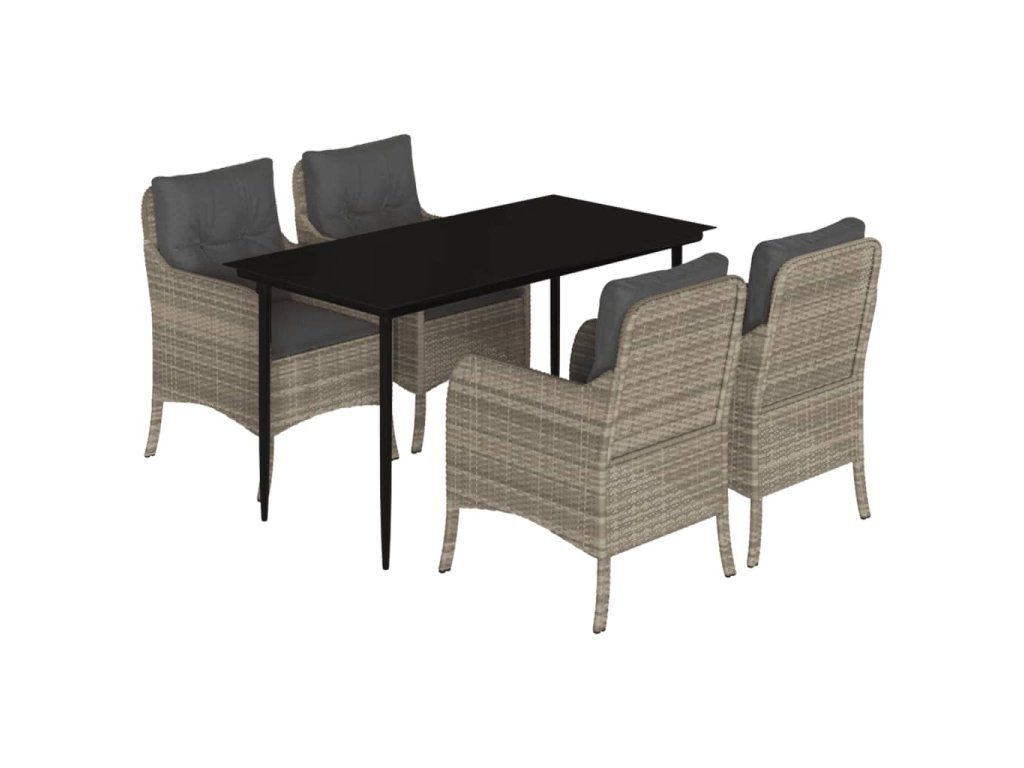 5dílný zahradní jídelní set s poduškami světle šedý polyratan 3211992