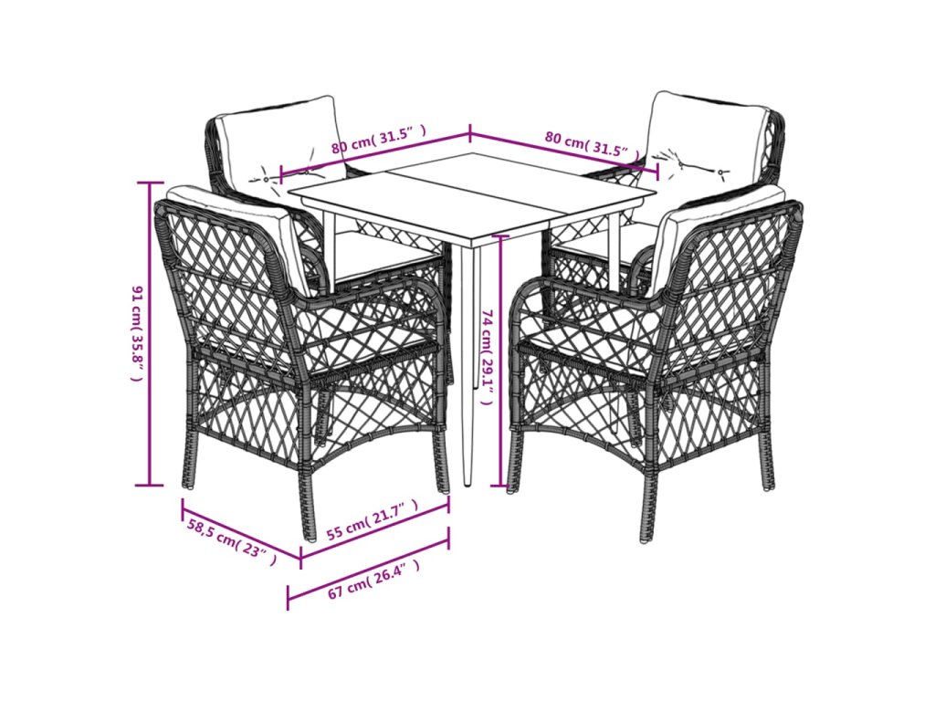 - Rozměry: 80 x 80 x 74 cm (Š x H x V)