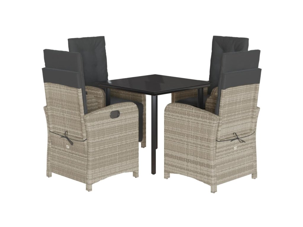 5dílný zahradní jídelní set s poduškami světle šedý polyratan 3212606
