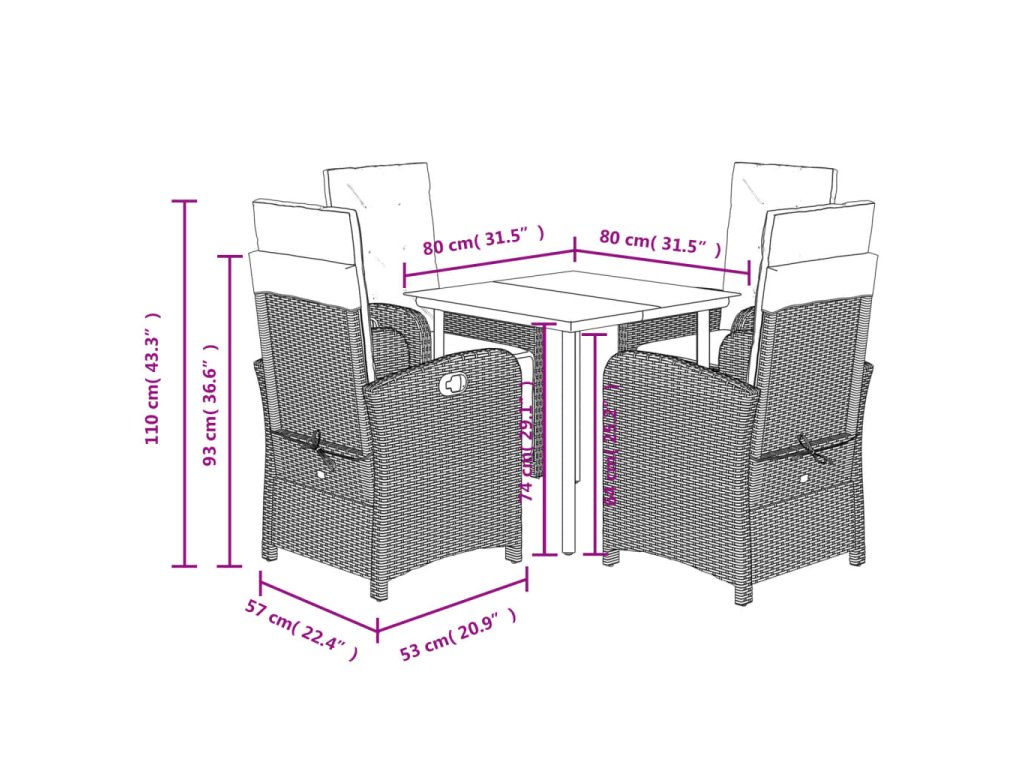 - Rozměry: 80 x 80 x 74 cm (D x Š x V)