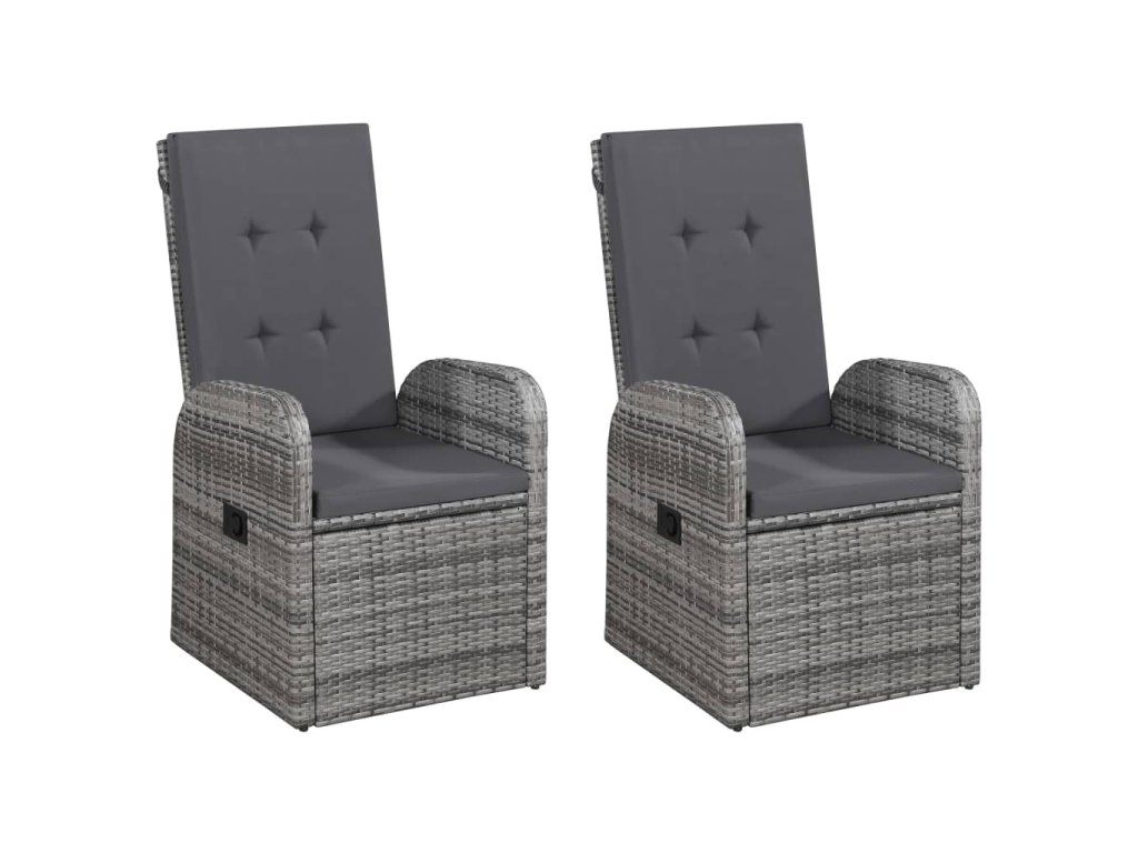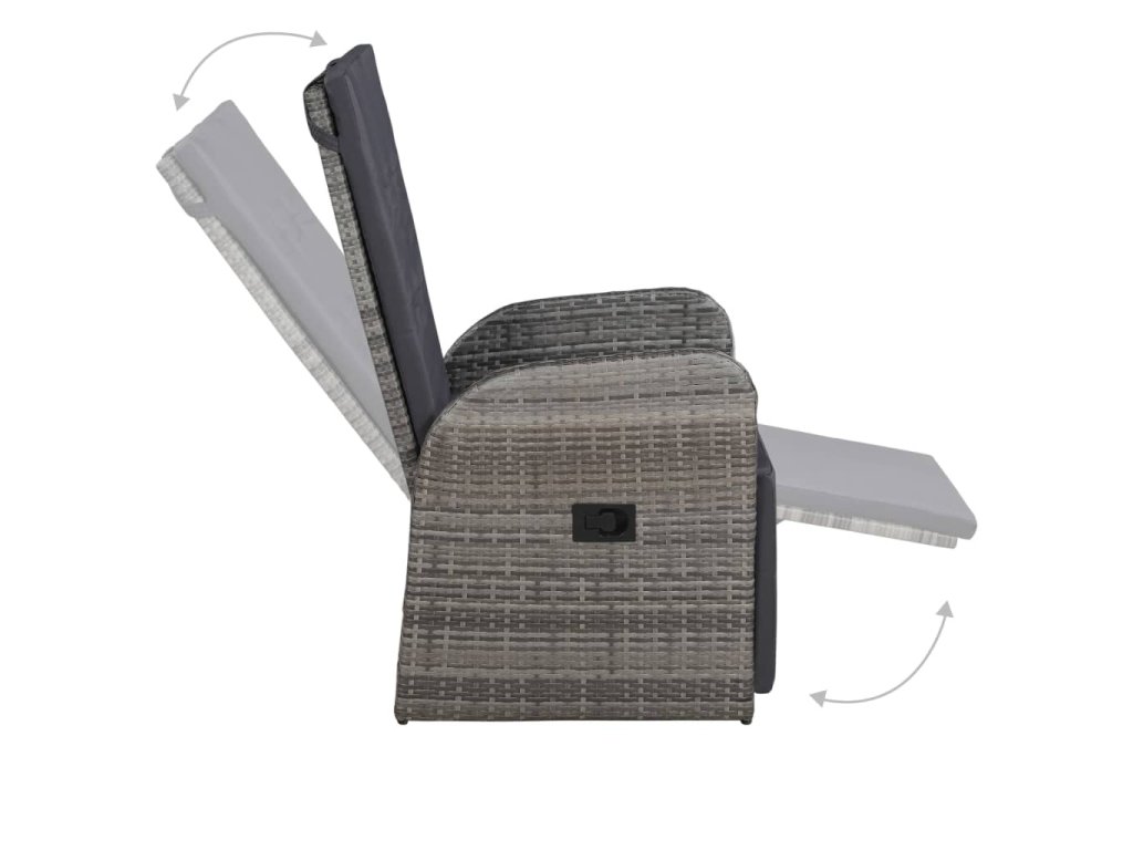 Jídelní stůl je zhotovený z masivního akáciového dřeva s olejovaným povrchem, takže je stabilní, odolný a nenáročný na údržbu. Bytelné jídelní židle mají rám z práškově lakované oceli, opletený PE ratanem, který výborně vzdoruje klimatickým vlivům a snadno se čistí. S polohovatelným opěradlem a opěrkou nohou vám nic nebude bránit v příjemném odpočinku. Opěradlo lze sklopit zatažením za tlačítko na boku. Židle mají lehkou konstrukci, není tedy problém je přesunout, kam potřebujete. Navíc jsou opatřené mimořádně pohodlnými, hustě polstrovanými poduškami pro maximální komfort. Jejich polyesterové potahy nevyžadují téměř žádnou údržbu a dají se stáhnout a vyprat.