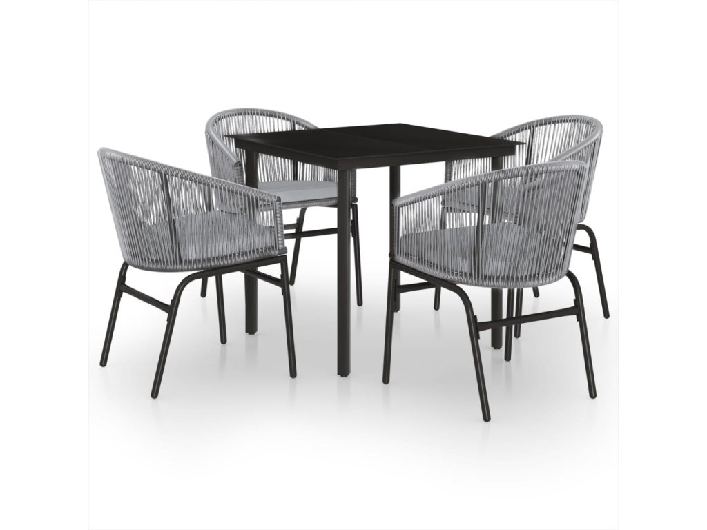 Zahradní jídelní set má práškově lakovaný ocelový rám, takže je robustní a stabilní a ideální pro venkovní použití. Hladká skleněná deska stolu se snadno čistí vlhkým hadříkem a skvěle vám poslouží k podávání jídla a pití nebo k vystavení různých dekorativních předmětů. Židle jsou vyrobené z PVC ratanu, jsou proto odolné a výborně vzdorují UV záření i špatnému počasí. Každá z nich je navíc opatřená odnímatelnou hustě polstrovanou poduškou, a zpříjemní vám tak váš odpočinek.