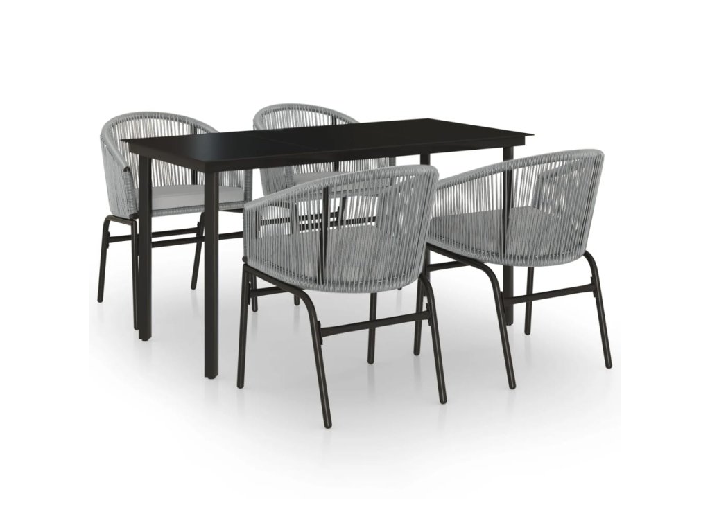 Zahradní jídelní set má práškově lakovaný ocelový rám, takže je robustní a stabilní a ideální pro venkovní použití. Hladká skleněná deska stolu se snadno čistí vlhkým hadříkem a skvěle vám poslouží k podávání jídla a pití nebo k vystavení různých dekorativních předmětů. Židle jsou vyrobené z PVC ratanu, jsou proto odolné a výborně vzdorují UV záření i špatnému počasí. Každá z nich je navíc opatřená odnímatelnou hustě polstrovanou poduškou, a zpříjemní vám tak váš odpočinek.