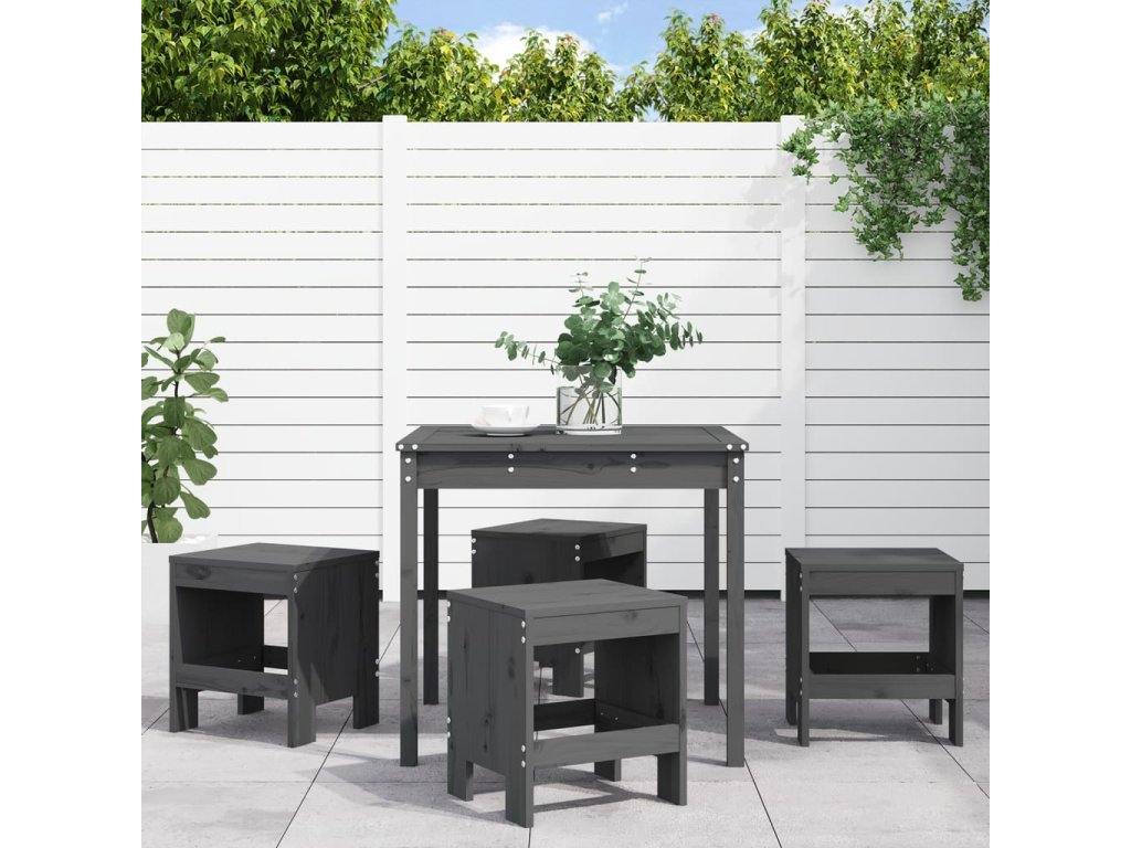 5dílný zahradní jídelní set šedý masivní borové dřevo 3157711
