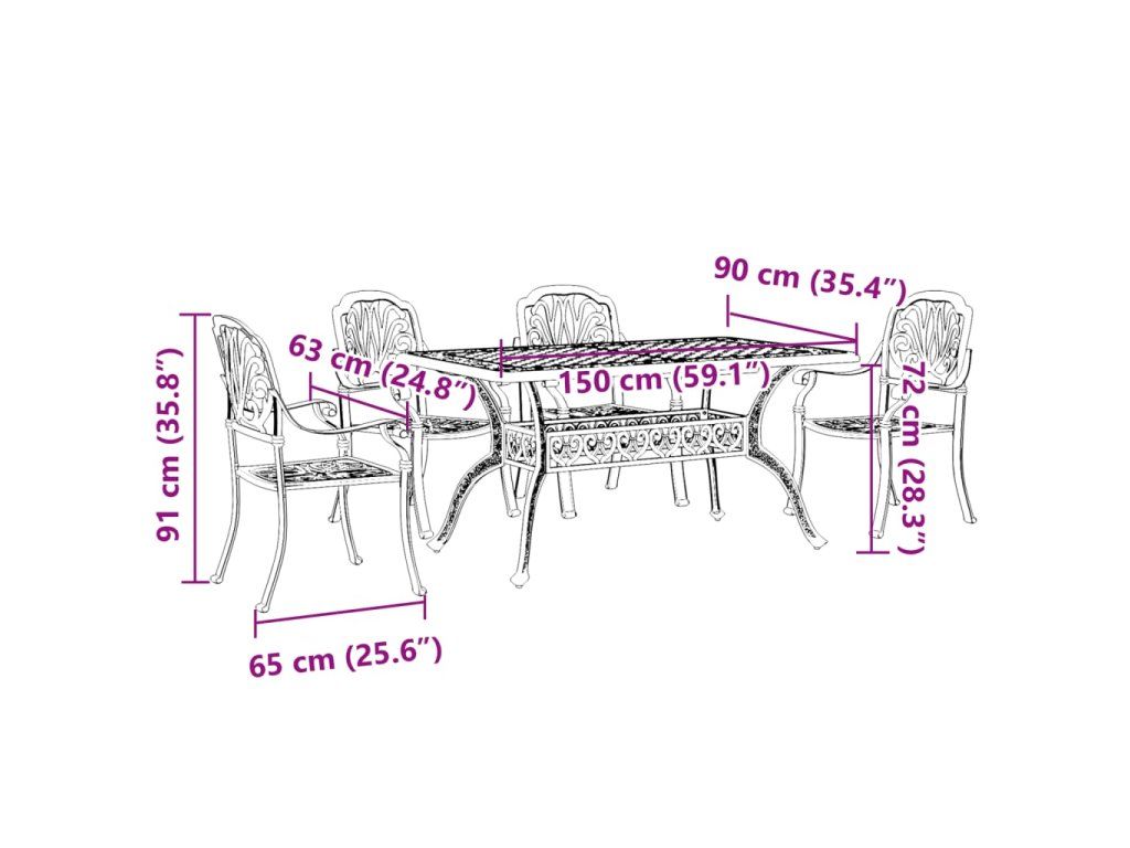 - Robustní a odolný rám: Tento zahradní jídelní set je zhotovený z litého hliníku, je tedy dostatečně robustní a odolný, aby vám zaručil dlouhá léta používání. Materiál je odolný vůči korozi a povětrnostním vlivům, takže jej můžete venku používat po celý rok.