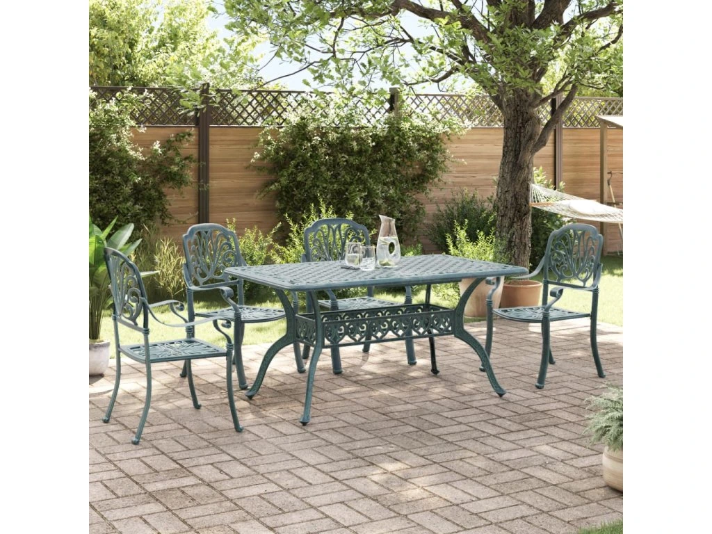 5dílný zahradní jídelní set zelený litý hliník 3216311