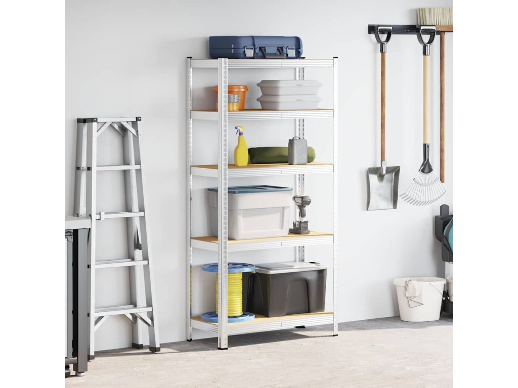 5patrový úložný regál stříbrný ocel a kompozitní dřevo 4016947