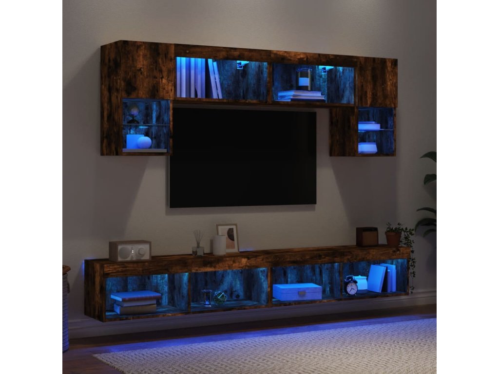 6dílná obývací stěna s LED kouřový dub kompozitní dřevo 3216708