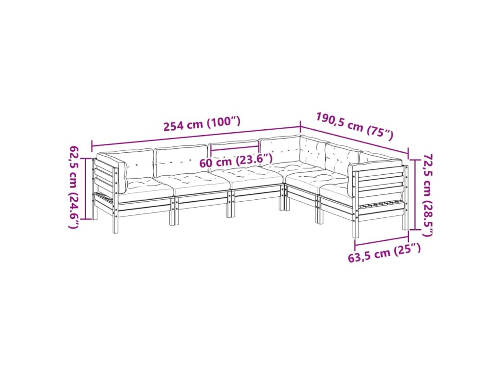 6dílná zahradní sedací souprava a podušky impregnovaná borovice 3299462