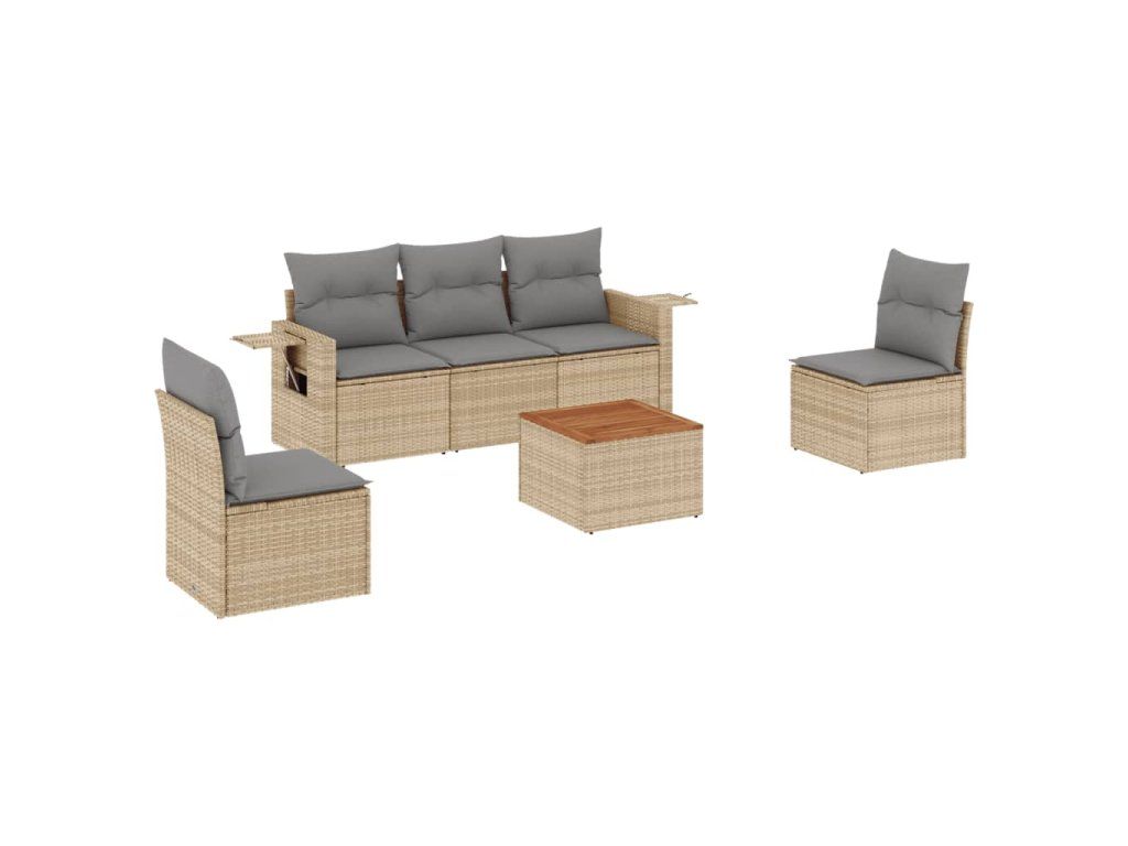 6dílná zahradní sedací souprava a podušky mix béžové polyratan 3256836