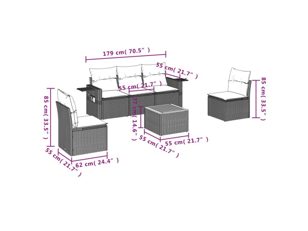 Tato zahradní sedací souprava je dokonalým doplňkem vaší zahrady, terasy nebo dvorku a poskytne vám pohodlné a příjemné místo, kde si můžete povídat s rodinou a přáteli nebo jen tak odpočívat a užívat si pobyt venku.