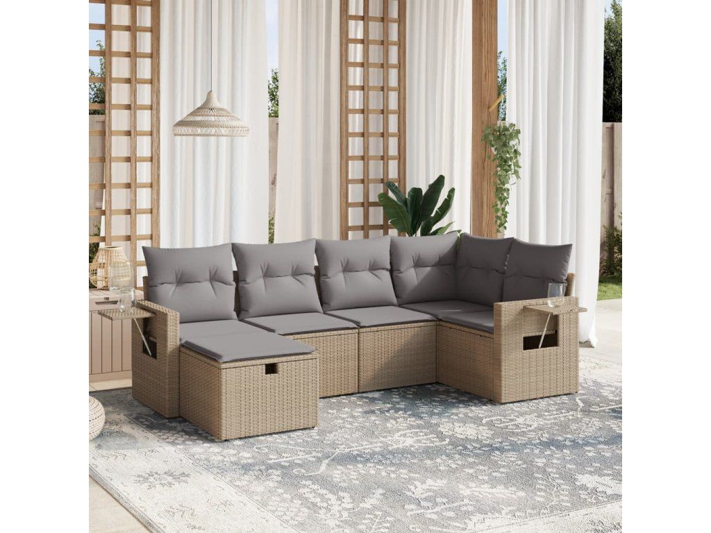 6dílná zahradní sedací souprava a podušky mix béžové polyratan 3263795