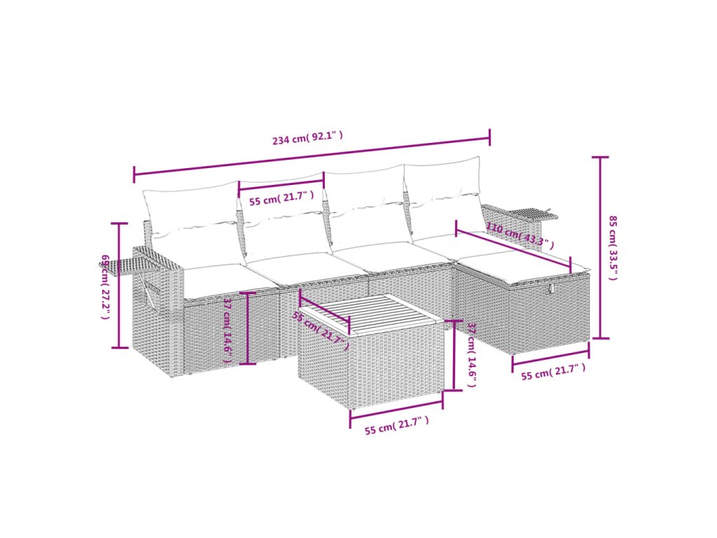 Tato zahradní sedací souprava je dokonalým doplňkem vaší zahrady, terasy nebo dvorku a poskytne vám pohodlné a příjemné místo, kde si můžete povídat s rodinou a přáteli nebo jen tak odpočívat a užívat si pobyt venku.
